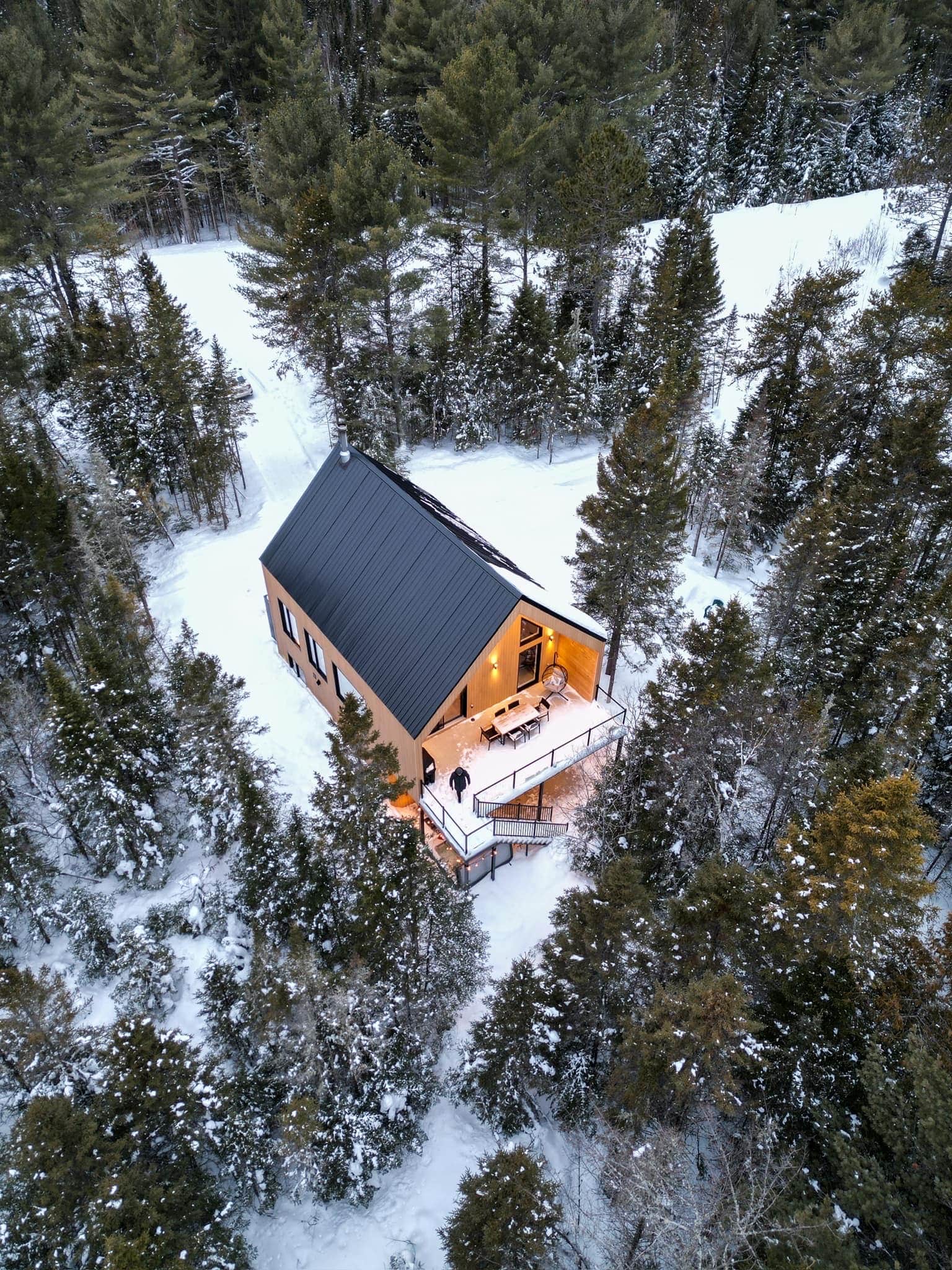 Notre chalet scandinave, à la fois moderne, épuré et chaleureux, se distingue par une finition haut de gamme et une atmosphère unique. L'étage s’ouvre comme un havre de paix, suspendu entre la cime des conifères et le ciel de Lanaudière, sans voisin à l’horizon.